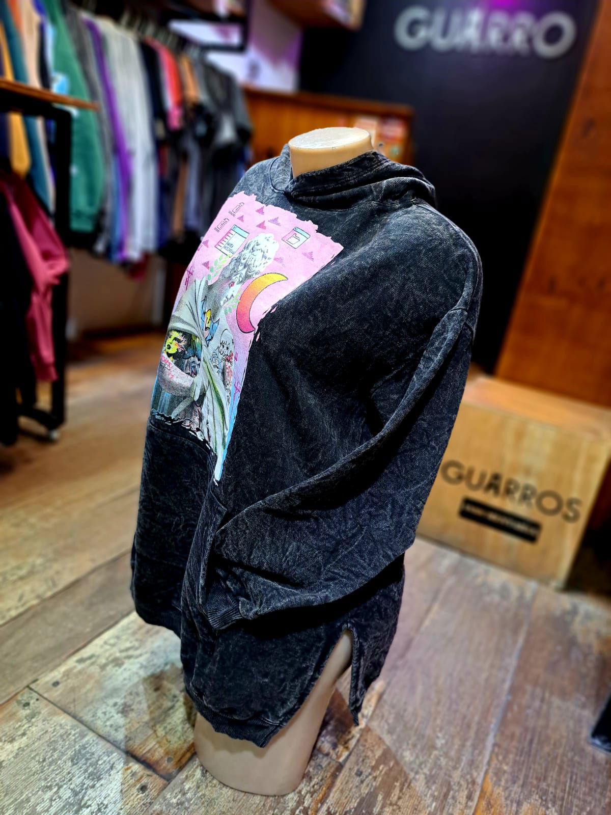 La tela con la que confeccionamos estas prendas ha sido sometida a un proceso de lavado y tratamiento (Stone Washed) lo que le da un aspecto suave al tacto y desgastado a la vista. se logra así un buzo de aspecto vintage cómodo y funcional.