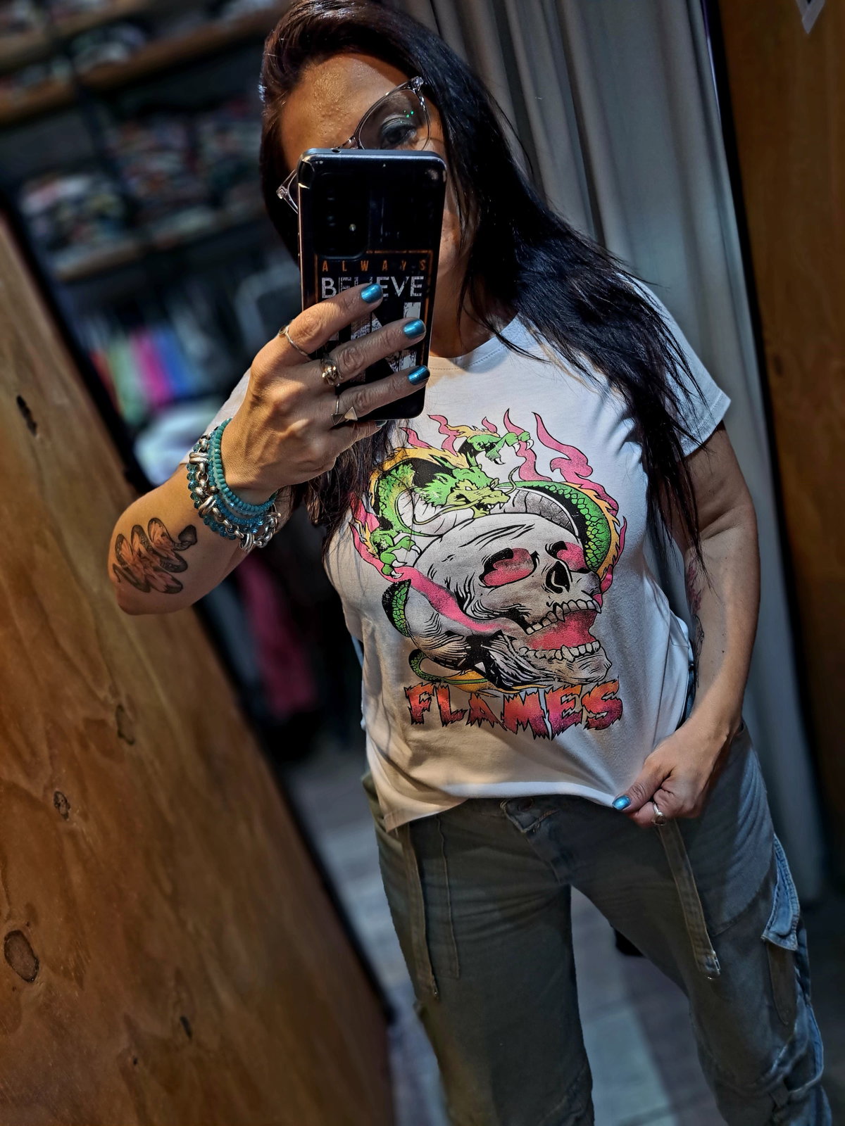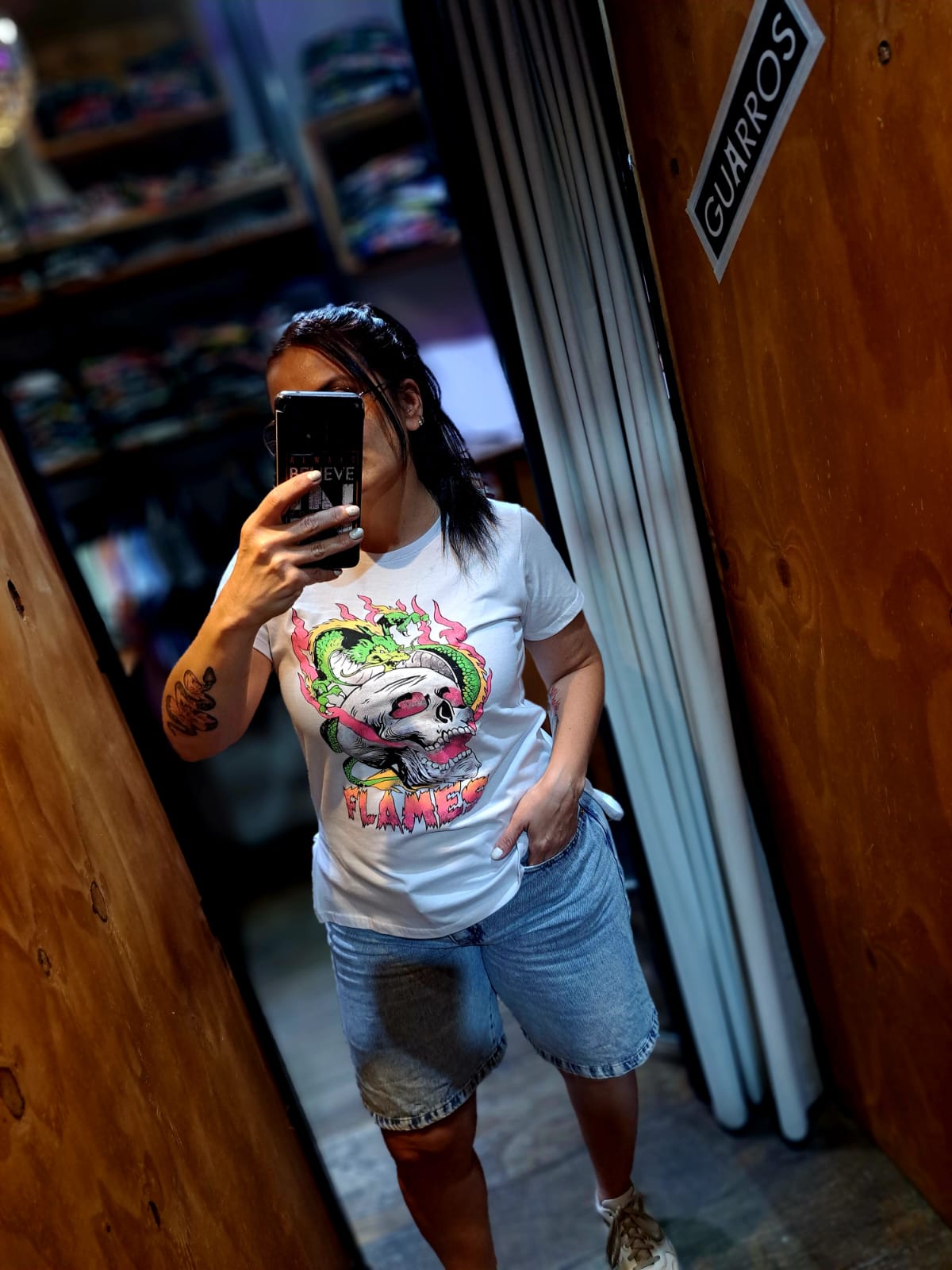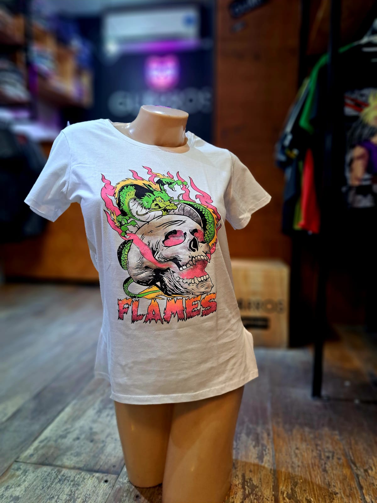 Remera Blanca |Talle Único Mujer| Calavera Flames