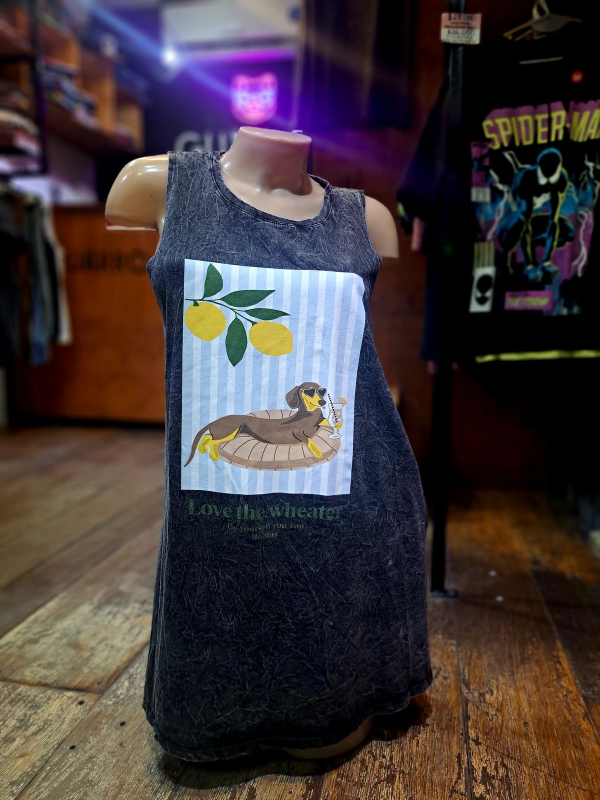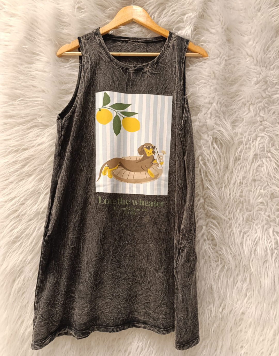 Vestido corto sin mangas, confeccionado en algodón nevado.